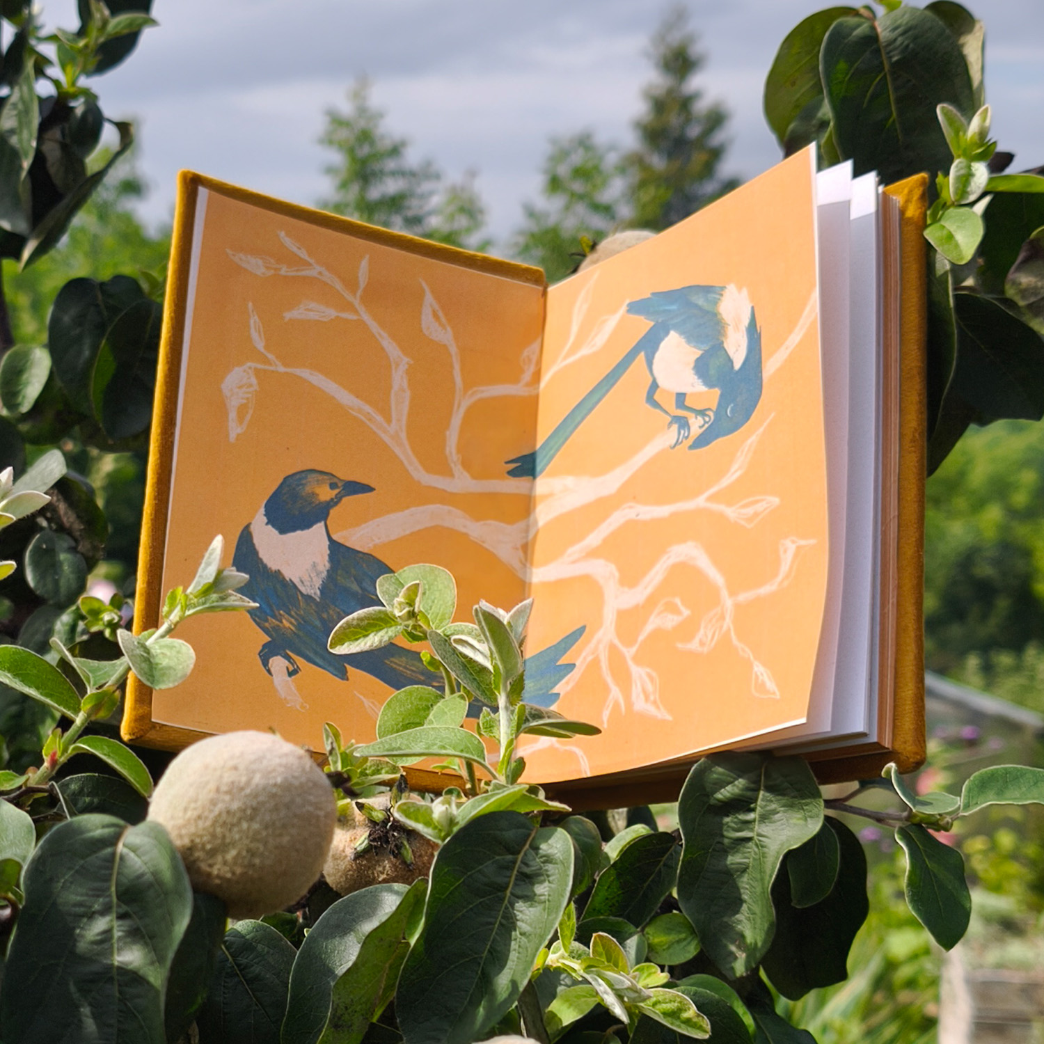 Miękki, słoneczny welur skrywa lekkość myśli i wolność ducha. Złocenia przedstawiają Różę Wiatrów i delikatną mapę – symbol podróży, zarówno zewnętrznej, jak i wewnętrznej. To notes dla marzycielek, podróżniczek, kobiet piszących z serca.