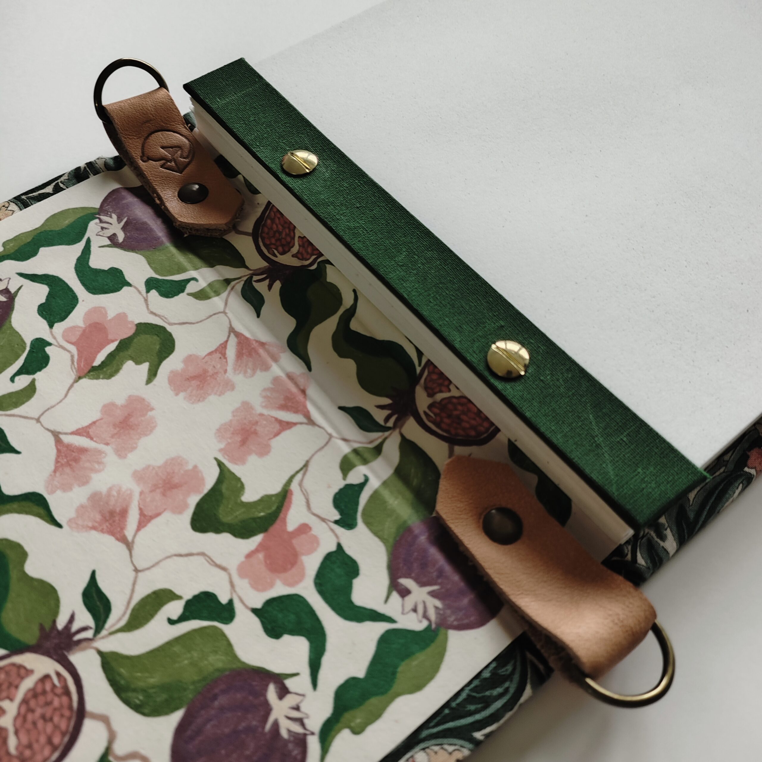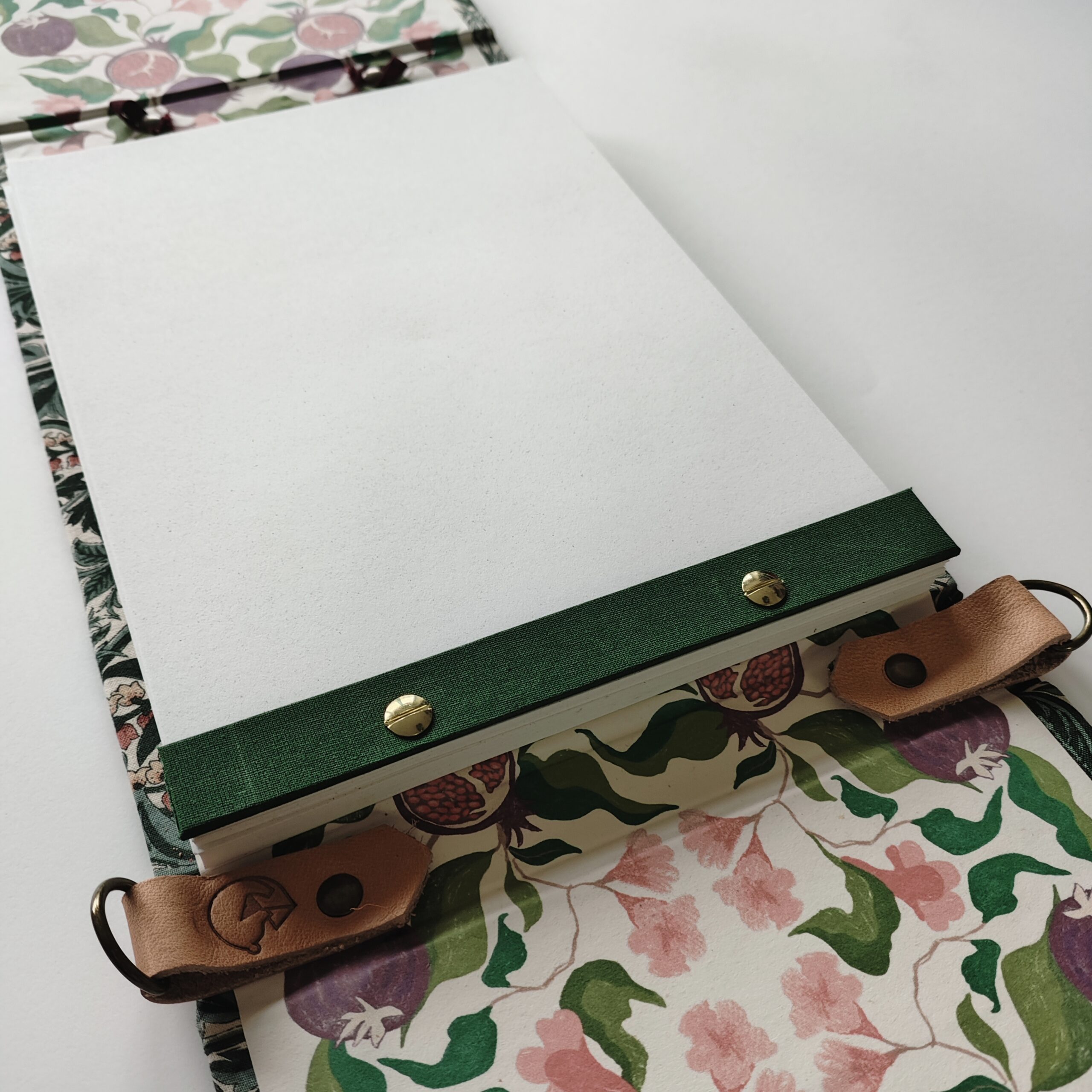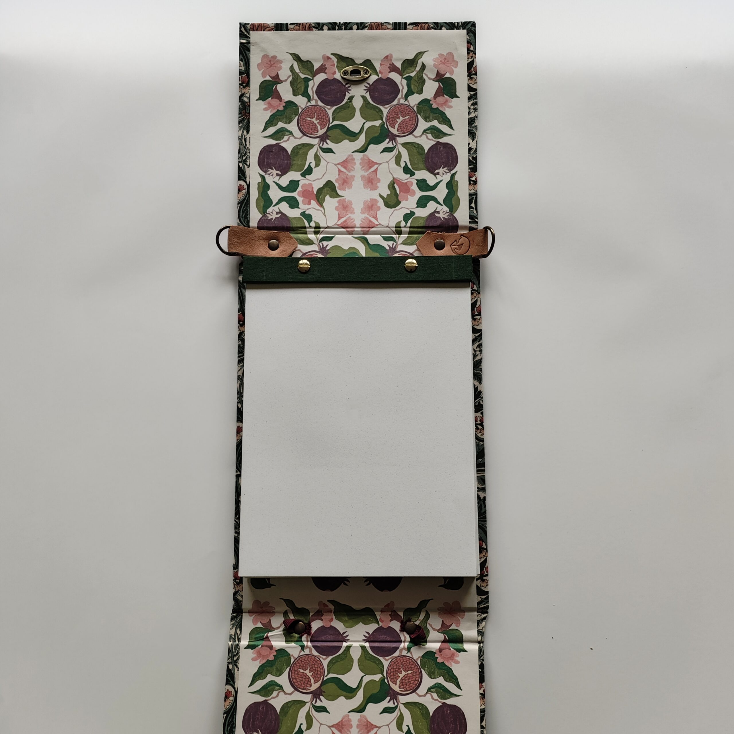 Szkicownik w formie torebki z wymiennymi wkładami i miejscem na ołówek
