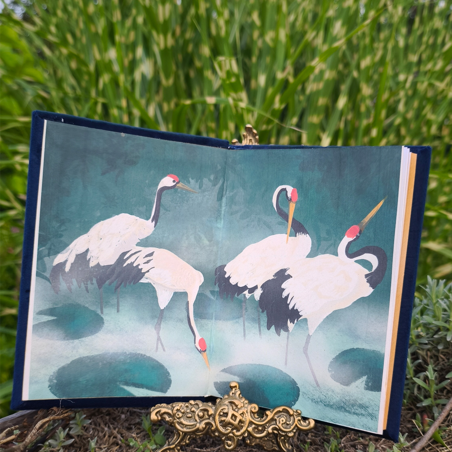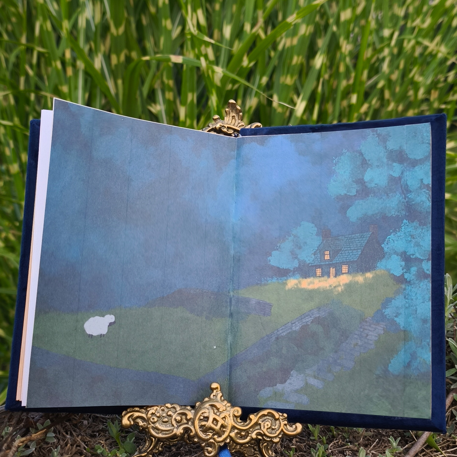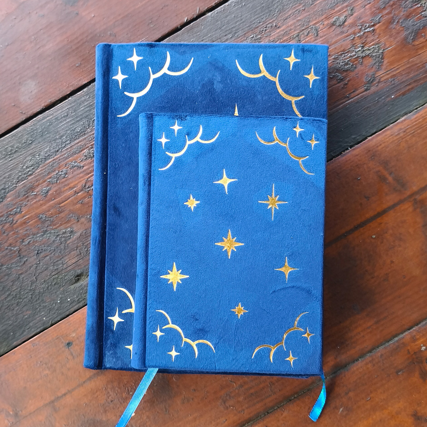 Głęboki odcień niebieskiego weluru przywodzi na myśl nocne niebo i spokojną taflę jeziora. Złocone gwiazdy odbijające się w wodzie nawiązują do scen niczym z baśni – idealny notes dla osób czujących głęboko i piszących intuicyjnie.